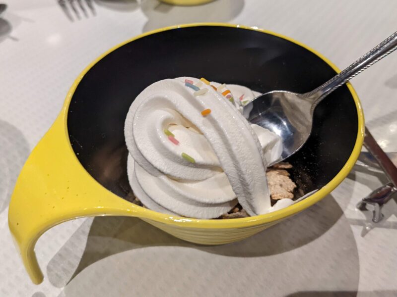 子供用にはヨーグルトやソフトクリームなどは専用のお皿ではなく、コーンスープ用のお皿が持ちやすいからオススメ♪