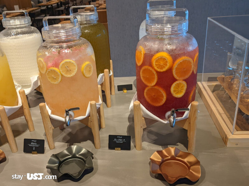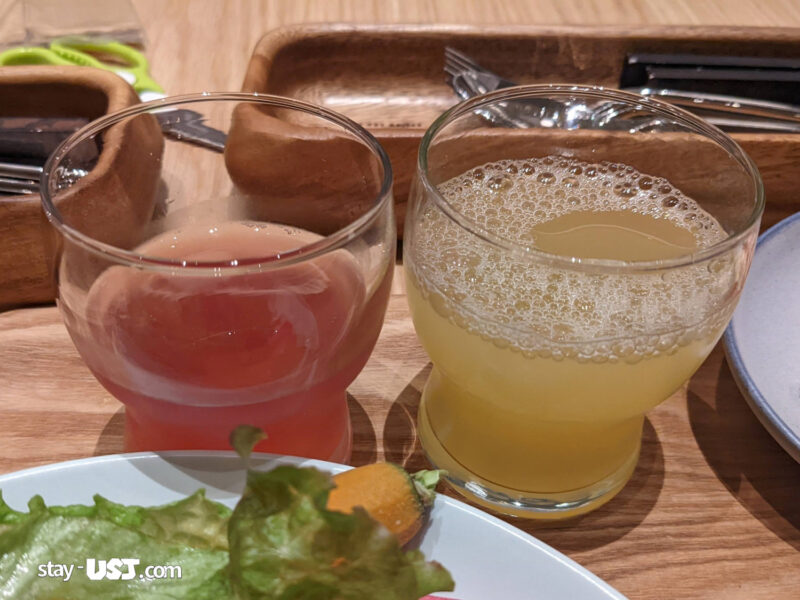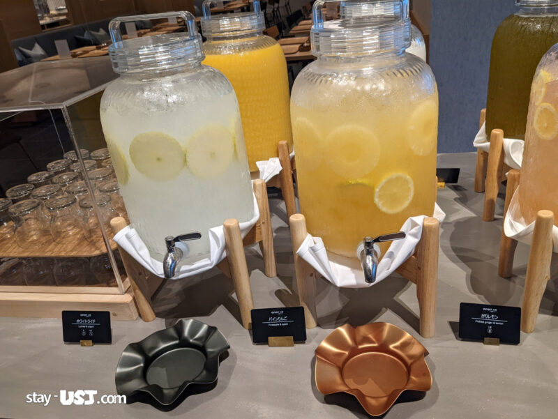 ビュッフェの誘導時、フレッシュドリンクもオススメと案内を受けました。パインりんごは想像よりも甘くて、がりレモンはジンジャーのパンチが効いてます。