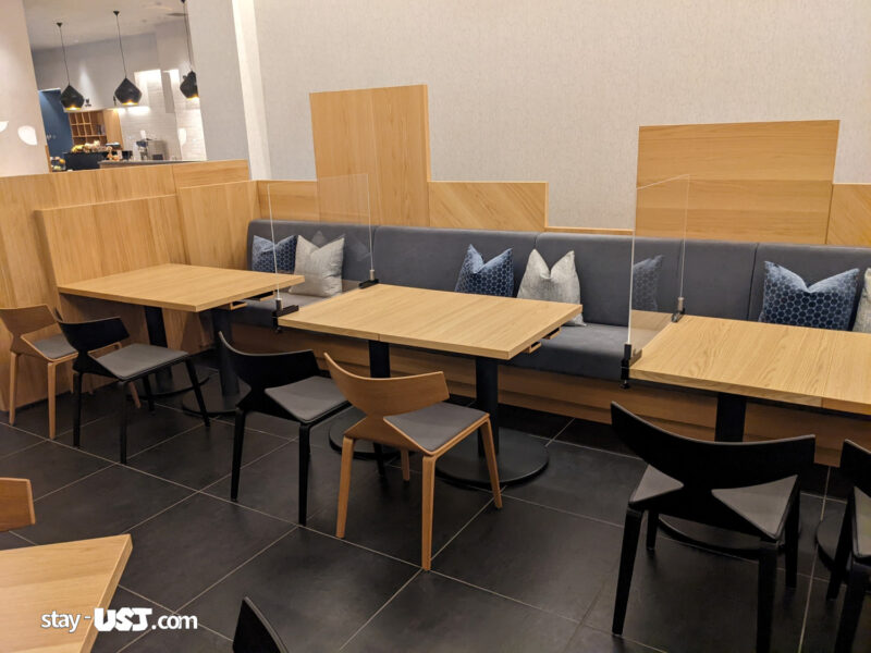 テーブル席もソファー席も豊富にあります。アクリル板は隣の席との境界のみ。