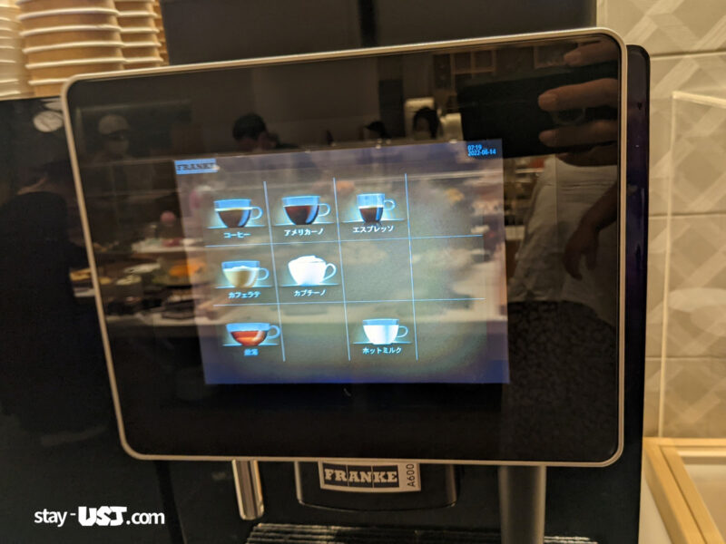 ビュッフェによくあるコーヒーマシーン。エスプレッソがあるのは嬉しい♪ココアは無いタイプですね。