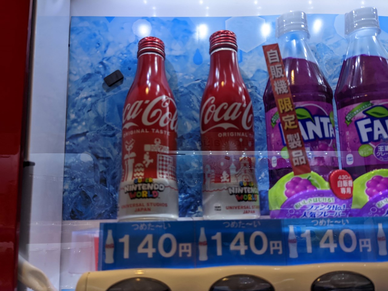 自動販売機は各客室フロアと1階・3階に設置されています。お値段はやや割高(お水130円、お茶160円)。…と思いきや、SUPER NINTENDO WORLDのコーラは近くのお土産ショップより安いです。アイスと限定コーラは3階だけにありました。