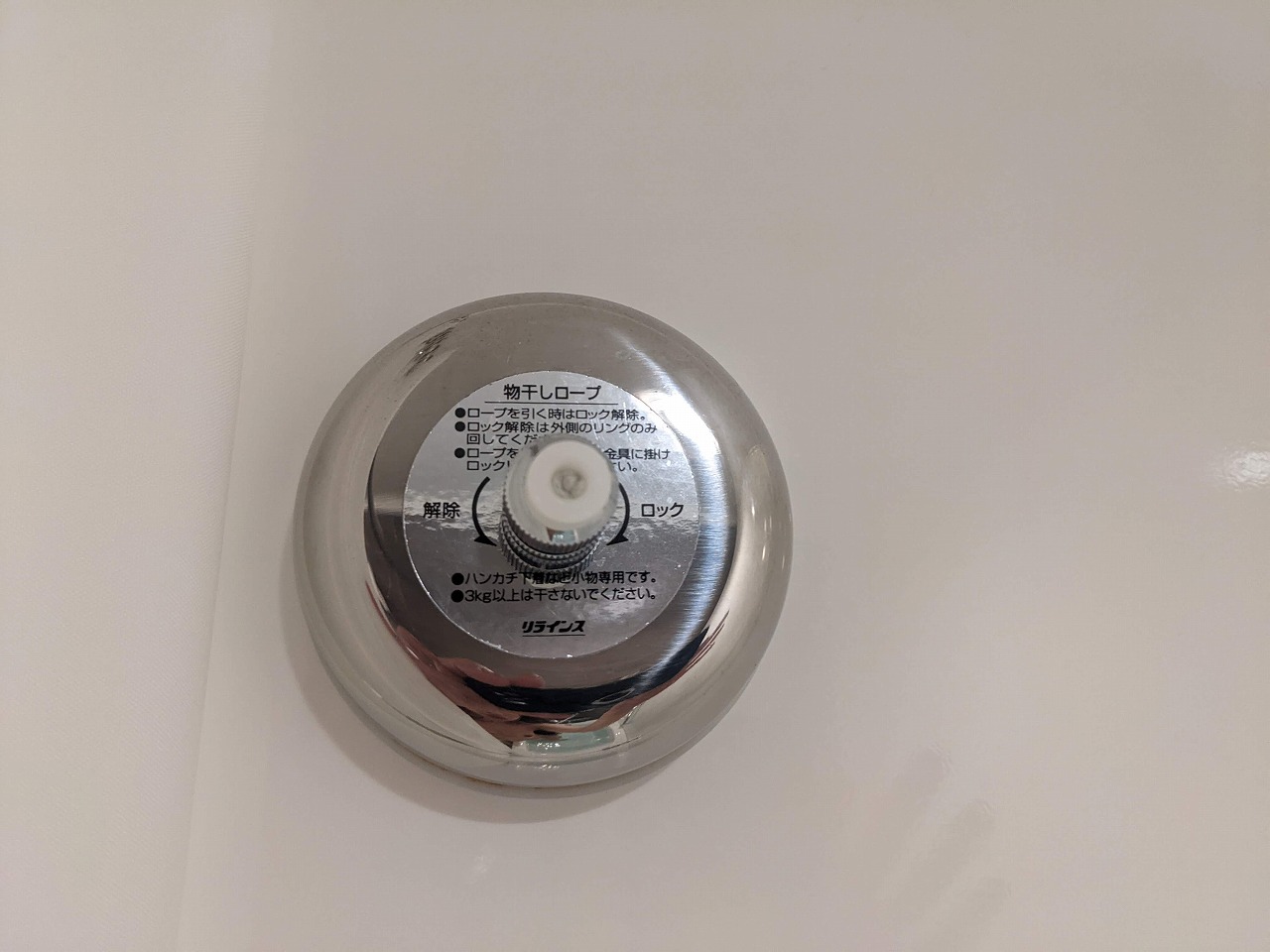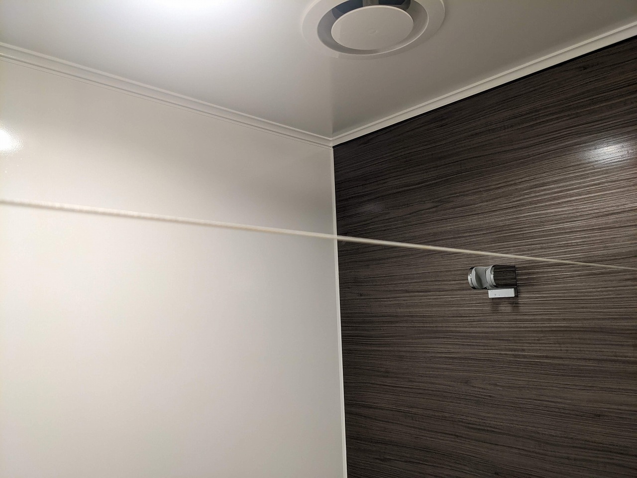 物干しロープがあります。食べこぼしなど、ちょっとした手洗いに便利。