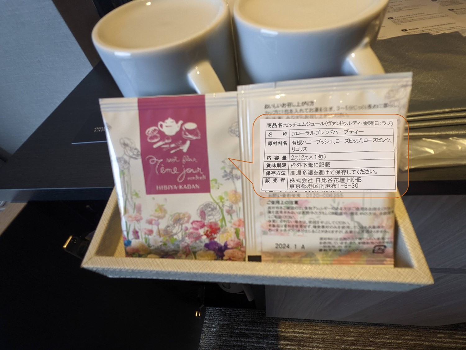 入浴剤のサービスやスキンケアセットがあります。こういったケアがあるのは嬉しいですね。